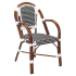 This weatherproof patio armchair is perfect for indoor or outdoor use. The stylish chair is upholstered in waterproof and UV resistant faux rattan and has a strong aluminum frame made to look like bamboo in walnut finish for a tropical look. The armchair is as comfortable as it is durable and is built to meet the heavy stresses of the busy food service industry. The chair is also lightweight and easy to move and stack thus giving you more flexibility when it comes to meeting your seating needs.