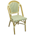 Going for a tropical and sophisticated look for your restaurant indoor and outdoor dining settings without redesigning your place? You will be surprised what this restaurant patio chair can do. Modeled to look like bamboo, this aluminum patio chair is lightweight yet durable for commercial indoor and outdoor use. The white and green rattan woven seat and back add a lot of style and character. It's no wonder that this product is a popular choice and used in a variety of settings. Pair a couple of these restaurant patio chairs with our Werzalit or resin tables if you want to bring a Parisian bistro vibe to your patio decor. Be sure to check out our selection of aluminum bamboo rattan chairs.