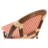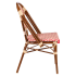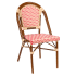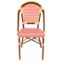 Enhance your patio with this aluminum bamboo chair, boasting a vibrant red and cream rattan weave that adds a touch of Parisian sophistication. Engineered for durability and stickability , it withstands heavy use in commercial indoor and outdoor spaces. With its timeless appeal and practical design, it’s ideal for creating an inviting and long-lasting atmosphere. This chair is as comfortable as it is durable and is built to meet the heavy stresses of the busy food service industry. The chair is also lightweight and easy to move giving you more flexibility when it comes to meeting your seating needs.