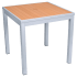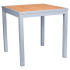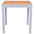 Add sophistication to your patio with this synthetic teak table. It mimics the rich look of natural teak without the upkeep hassles. Accented with a silver powder-coated aluminum edge and supported by four matching legs, it offers a chic, modern vibe. Designed for the outdoors, it's highly resistant to water, stains, UV light, cracks, and extreme weather. Pair it with our chairs and bar stools for a complete ensemble.