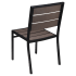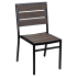 Weather resistant style for your patio! Owing to it's aluminum construction this chair will never rust, ensuring a long life on the patio. The slats are made from faux Teak, meaning they're easy to clean and maintain. These are a simple, elegant solution to patio seating - particularly when matched with the available armchair, bar stool, and table!