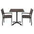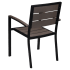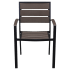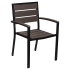 This Black & Dark Walnut Patio Dining Set is engineered for durability and contemporary style. The black aluminum table pairs seamlessly with the dark faux teak top, while matching armchairs offer long-lasting comfort and support—ideal for outdoor restaurants, cafes, and rooftop venues.