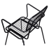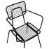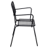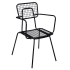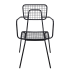 The Ollie arm chair is a stackable, light weight, highly durable, and easy to clean, addition to our line of patio chairs. Its black E-coated metal frame will last through heavy daily commercial use. These beautiful patio chairs are comfortable and attractive, and can easily fit in your restaurant patio decor. A 4/5" thick cushion with your choice of grey or blue UV-resistant fabric can be ordered for extra comfort and a touch of color. It is equipped with Velcro straps to attach it firmly to the seat.