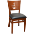 The chair comes in a cherry wood finish and customers can choose either a wood, saddle shaped seat or a padded seat upholstered in vinyl. The chair is popular in bars, bistros and restaurants nationwide and will complement your decor.