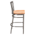 Like the rest of our metal restaurant bar stools, this commercial bar stool is a popular choice for furnishing restaurants, bars, hotels, lounges and other high traffic establishments. Functional and versatile, this metal bar stool, is built to withstand the daily rigors in the food and hospitality industry while adding a touch of glamour and industrial charm to even the most simple decor. The clear coat finish and elongated vertical back design help elevate its rustic attractiveness. Choose between a wood or upholstered seat.