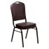 This stackable banquet chair is a tough chair that meets the highest commercial standards. Built to withstand the rigors of time, the sturdy 16 gauge steel frame in a copper vein finish that holds up to 500 lbs and stacks up to 15 chairs high makes it one of the strongest chairs in the market. Guests will appreciate the comfortable seating this chair offers with its cushioned back and seat upholstered in brown vinyl. Not only does this chair make a great seating choice for restaurants and hospitality settings,it can be used as additional seating in venues that need it.