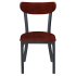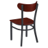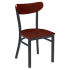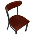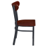 Featuring an elegant wood back in several rich and warm wood finishes, the Curvy Metal Chair blends the beauty of elegantly crafted wood with durable metal construction. Its fully welded steel frame is finished with a rugged black powder coat for longevity and enduring strength in demanding restaurant settings. For additional customization, there is an option for a wood or black padded vinyl seat, or choose from a selection of premium vinyl and fabric upholstery colors and patterns at an additional cost, offering a tailored fit in any setting.