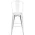 Exuding old world rustic charm accented by the vintage design and distressed white finish, this bistro style bar stool will definitely give your space a unique personality. A set of these lightweight commercial bar stools stack with very little effort allowing you to save space and storage as needed. Your guests will most certainly enjoy the comfortable high curved backrest and the dramatic flair this bar stool brings to your decor.