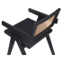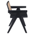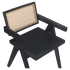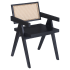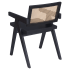 This fashionable and modern Gaia Cane arm chair offers a perfect blend of style and practicality. The strong black frame, hand-crafted from solid wood, is accented by its sharp edges and smooth angles. On the back, intricate cane mesh artfully covers the arms, providing a cozy and fashionable seating experience, sure to make an eye-catching focal point in any corporate setting.