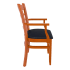 The chair comes in several wood finishes and customers can choose either a wood, saddle shaped seat or a padded seat upholstered in vinyl or fabric. The arm chair is popular in bars, bistros and restaurants nationwide and will complement your decor.