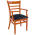 The Ladder Back Wood Chair with Arms is designed for comfort and durability. The commercial chair is built to withstand heavy usage and features a solid wood frame built with superior mortise and tenon style construction. The joints are supported with corner blocks and heavy duty L brackets to give the chair additional strength and stability.