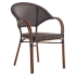 Metal Bamboo Patio Armchair with Dark Brown Rattan and Walnut Frame