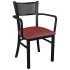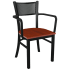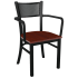 The metal checker back restaurant chair is built for heavy commercial use. The metal chair features a strong metal frame with a powder coated finish. The joints are full welded for ultimate support. The commercial chair also comes with the option of a high density foam padded seat upholstered in vinyl or fabric or a saddle shaped wood seat. A matching side chair and bar stool are also available.