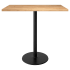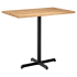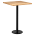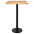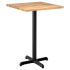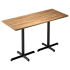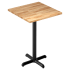 The butcher block bar height wood restaurant table is a luxurious and trendy choice for restaurants and other venues. With a thickness of 1 1/2” this USA made bar table will enhance any high-end dining experience. Available in a variety of sizes and over 10 wood finishes this reversible table set comes with either an X prong or round metal bar height table base in a black powder coating finish.