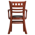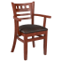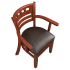 The Premium US Made American Back Wood Chair with Arms restaurant arm chair delivers dependable quality without sacrificing appearance. Constructed entirely of solid wood, it includes a durable saddle seat, sturdy wooden arms, and nylon glides for floor protection. Complete the look with a matching bar stool, or choose the optional padded seat for additional comfort. Unlike competing chairs that rely on inexpensive plywood seats, ours are made from solid wood for greater strength and durability.