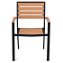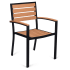 Made for high-traffic areas, this patio set combines durability with modern design. It features a black sandblasted aluminum frame and weather-resistant faux teak slats that hold up in any kind of weather. With a full table and armchairs included, it’s a simple and effective solution for outdoor or indoor dining spaces.