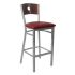 With a silver finished metal frame and a circle back design, this bar stool fits in perfectly with most decors. Select from a solid wood seat or and upholstered seat with vinyl or fabric. Complete your decor with a matching chair and swivel bar stool.