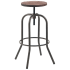 Swivel Backless Metal Bar Stool in Dark Grey Finish with Walnut Wood Seat