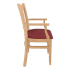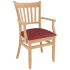 The arm chair comes in several wood finishes and customers can choose either a wood, saddle shaped seat or a padded seat upholstered in vinyl or fabric. The arm chair is popular in bars, bistros and restaurants nationwide and will complement your decor.